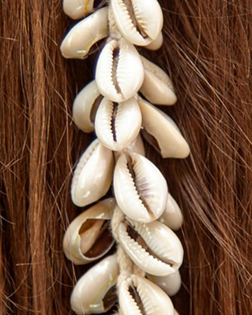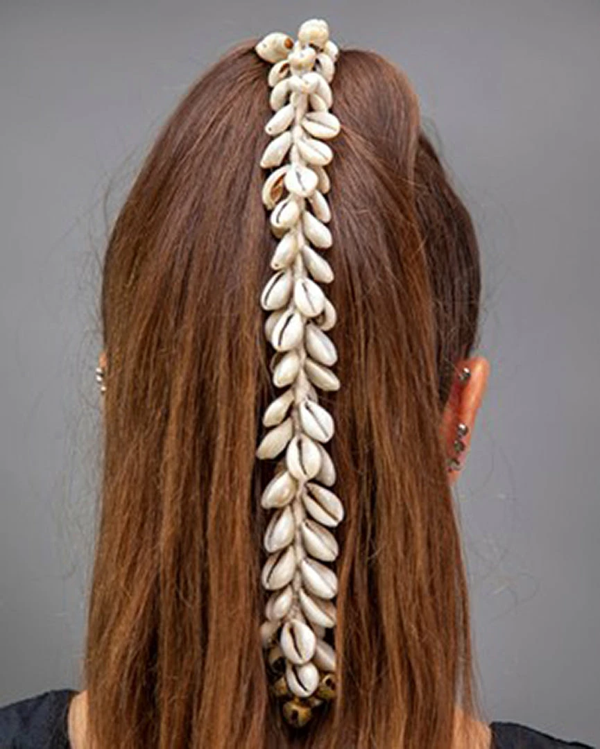 JM162-Cowry Shell Hair Tie With Bells. Can also be worn as a necklace
