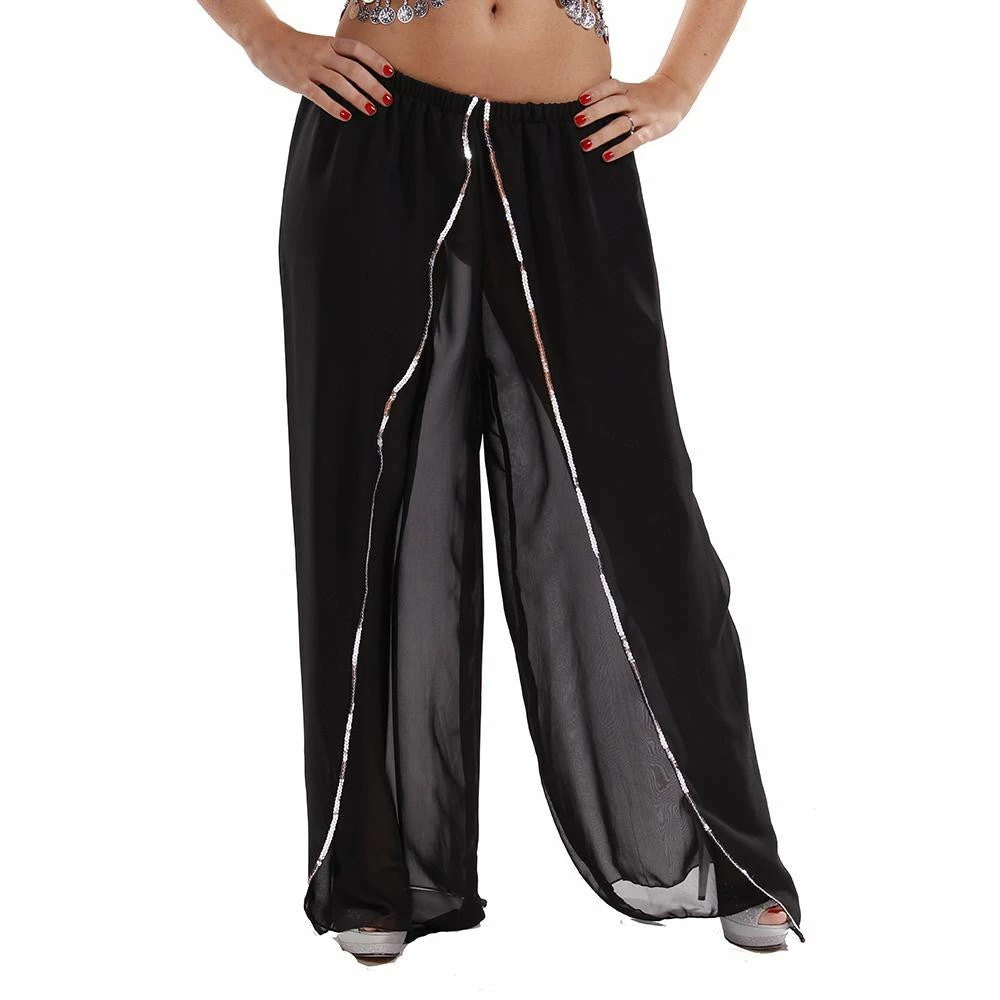 HP97-Haili Harems… Our new harem pant design features a unique take on the pants with an elaborate double sheer leg. Pair these with the matching top and jewelry.