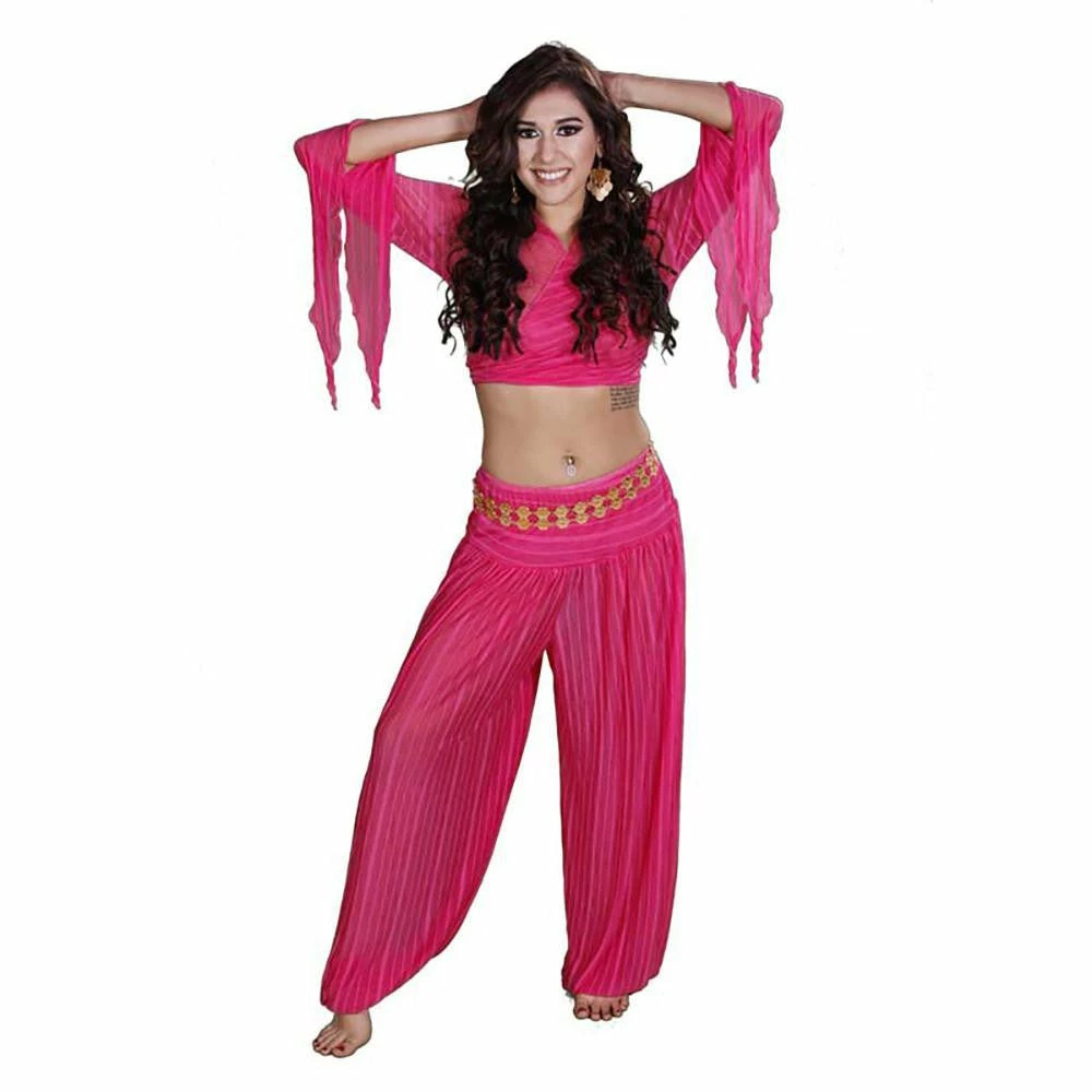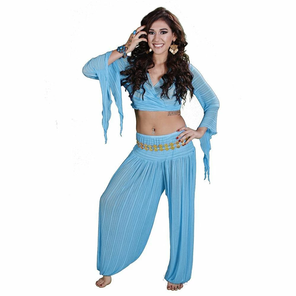 CS303- Sheer Harem…This lightweight harem suit works well for wearing in the dance studio and other intimate settings. The top is adjustable and ties in the front or back features ghawazee drop sleeves.‚