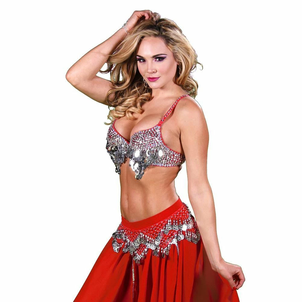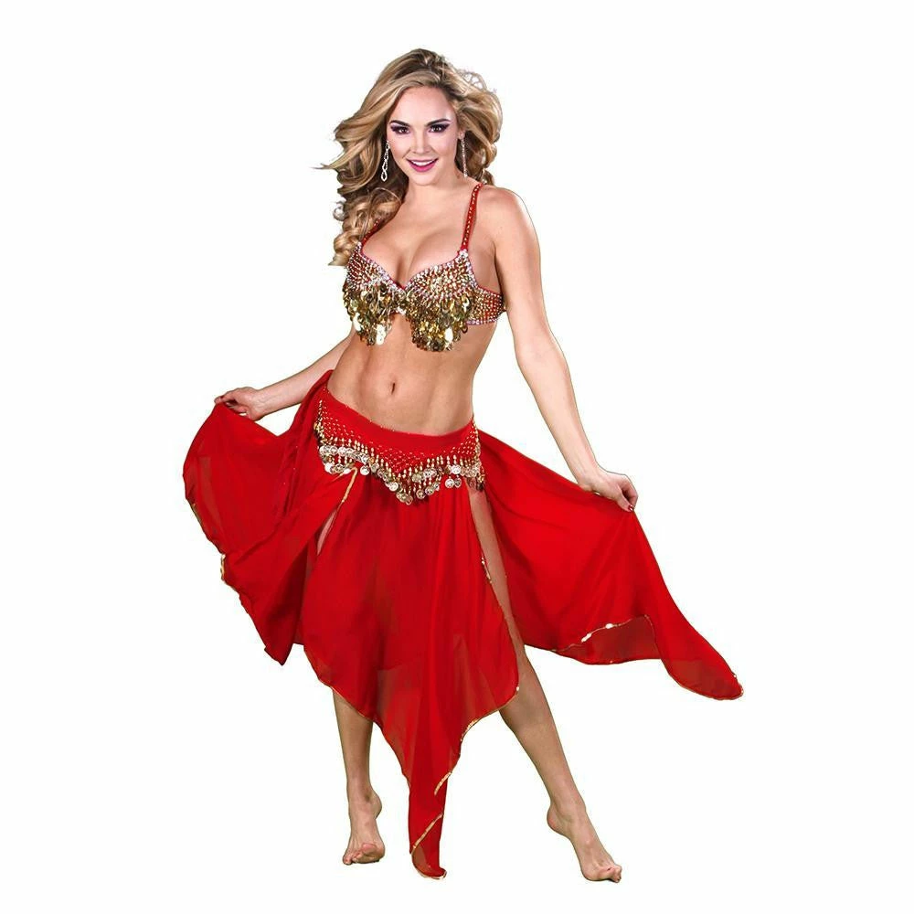 CS265-Golden Glows…This star-studded costume is perfect for showing your best raqs moves. It’s made with the new professional in mind. Bra top fits comfortably with heavy decoration in the cup area. It’s a fun ensemble for intimate affairs and special shows.