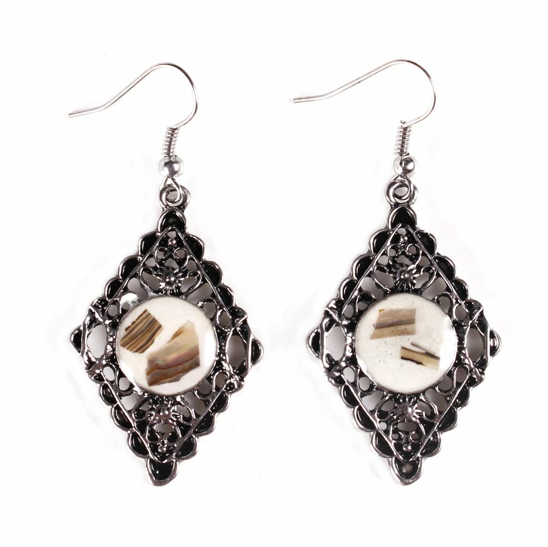 ER54 – Mirrored Diamond…This mirrored earring has a wild stone center and mimics broken glass on the outer edges of the diamond. It’s a bold piece that makes a great conversation piece.