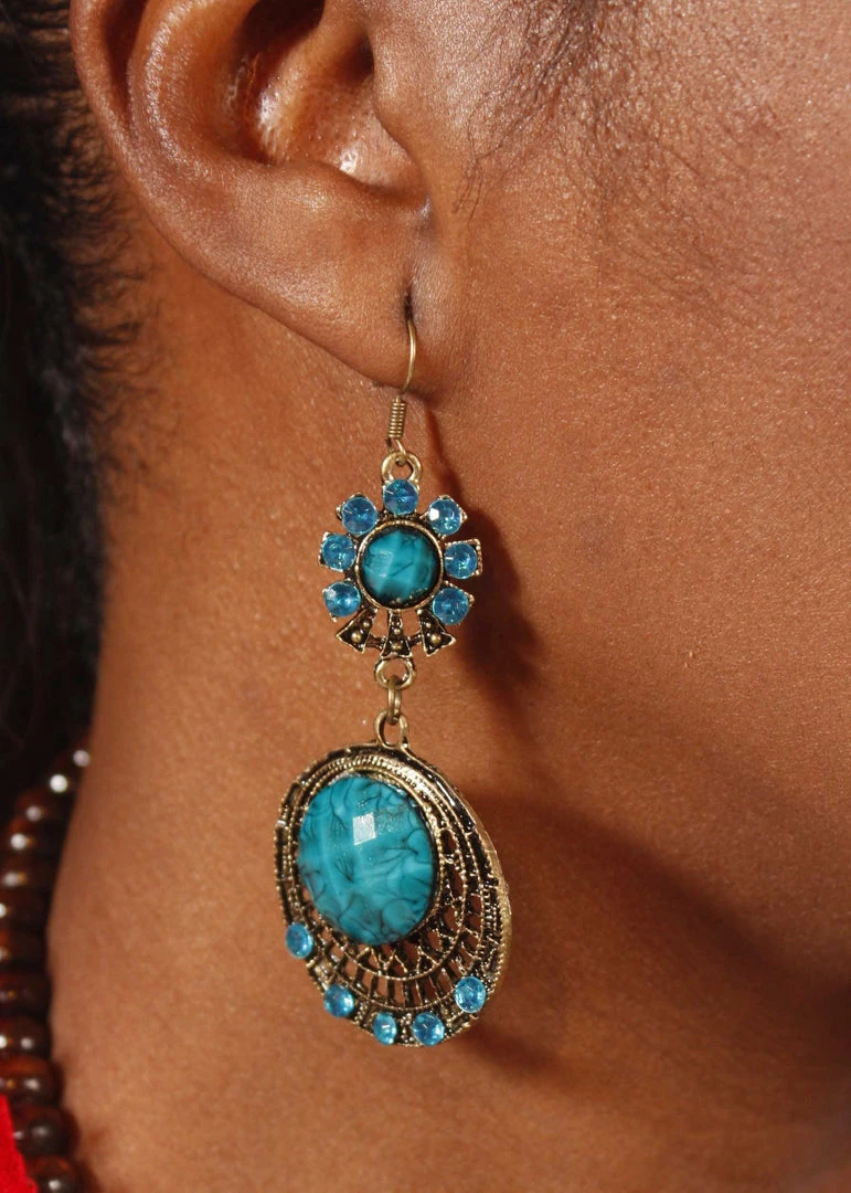 ER19 -Lunes Soleil…This beautifully constructed earring has a floral style droplet gem and rhinestones to compliment it. Earring is medium weight and can be worn with costumes or as elegant attire.