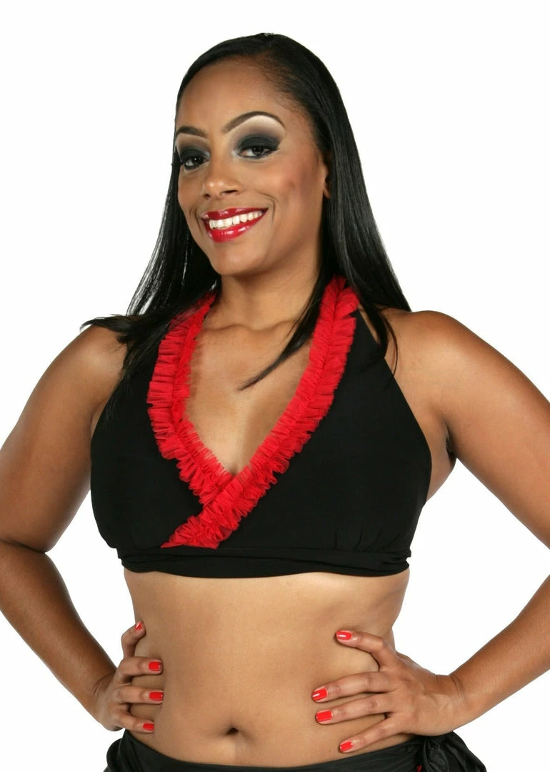 TP20-Sheer Shimmy…Shoulder shimmies will never be the same when wearing this sheer delight of a top. This halter has stretchable fabric that fits up to an XL comfortably. Comes in a variety of colors. Mix and match with skirts or pants for a new spin in your dancer show.