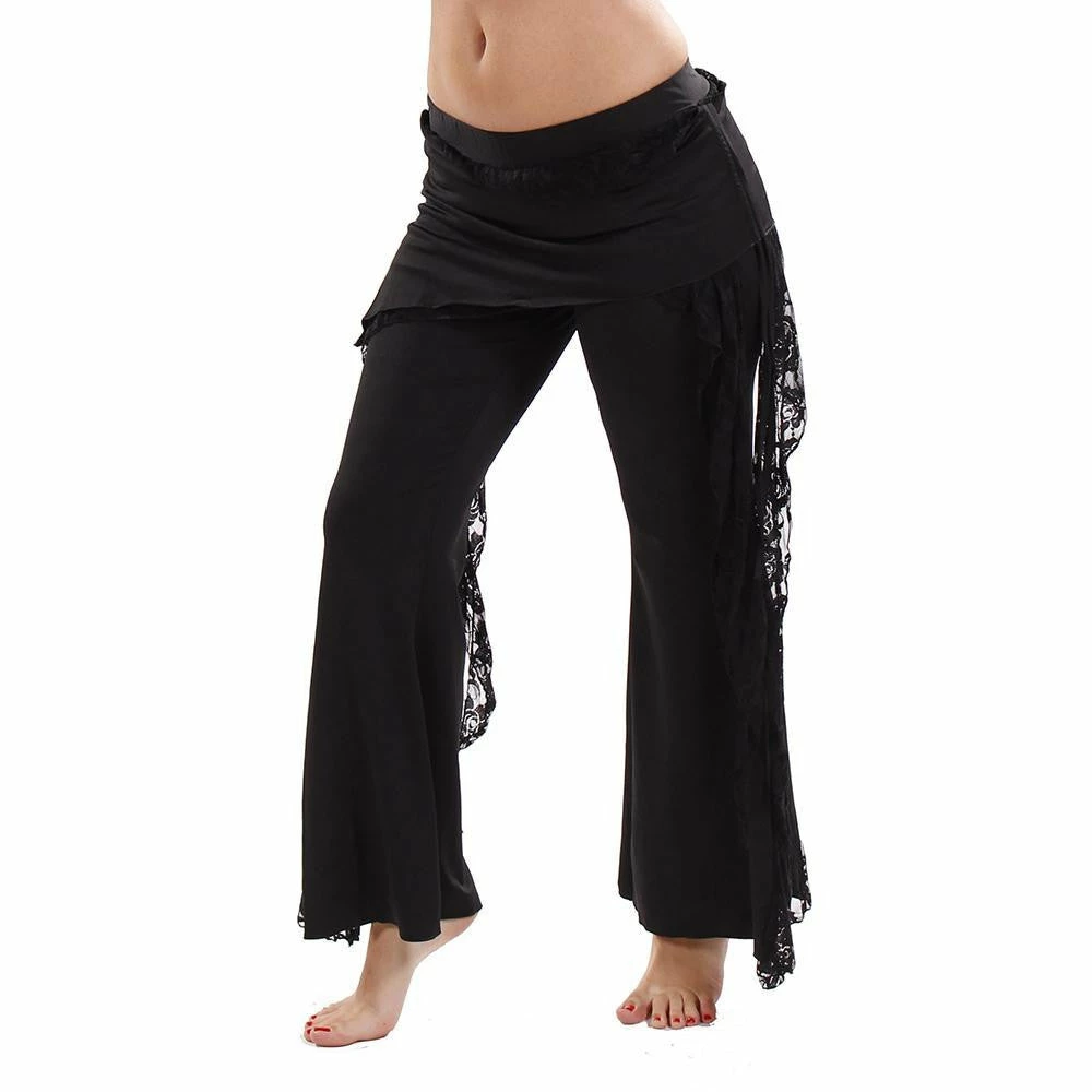 HP94-The Jenny Js…These awesome pants have a beautiful decor in the hips. The built-in hip shards are made of two ties of fabric, one being a color lace, with elastic for give in the tummy area. Pair this with the Jenny top for a fantastic fusion set or modern dance performance.