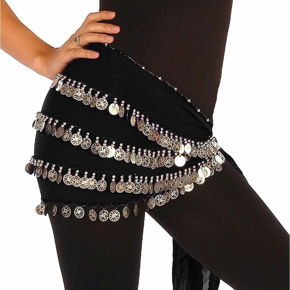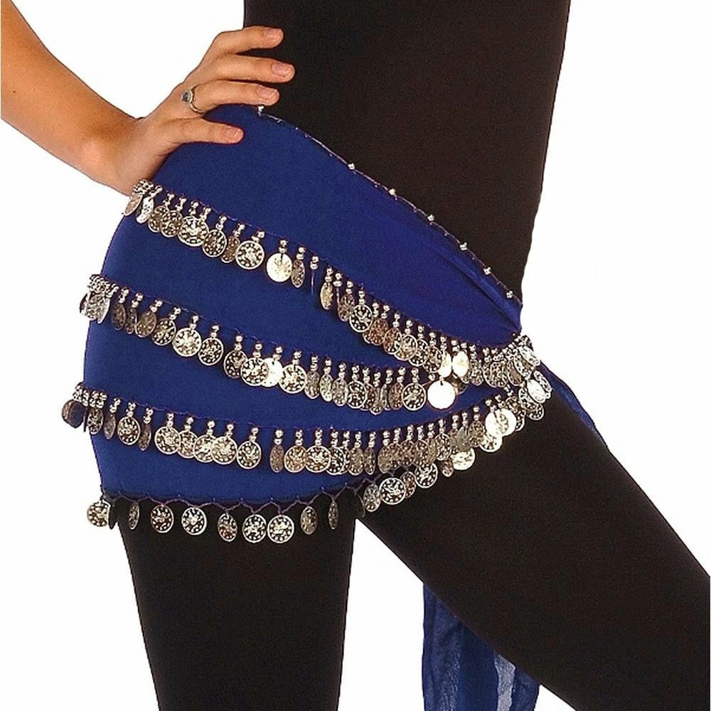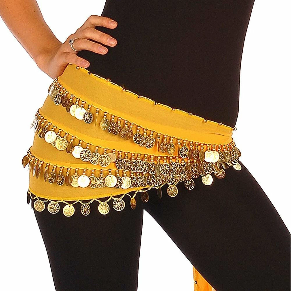 BC – The Yasmina…..This fun four row gold coined hip scarf has over 300 beads and workings making it ideal for any occasion. Fabric is chiffon and with a rectangle cut. Perfect for Egyptian choreography in a beladi dress. This scarf is great to add spice to your Zumba workout!