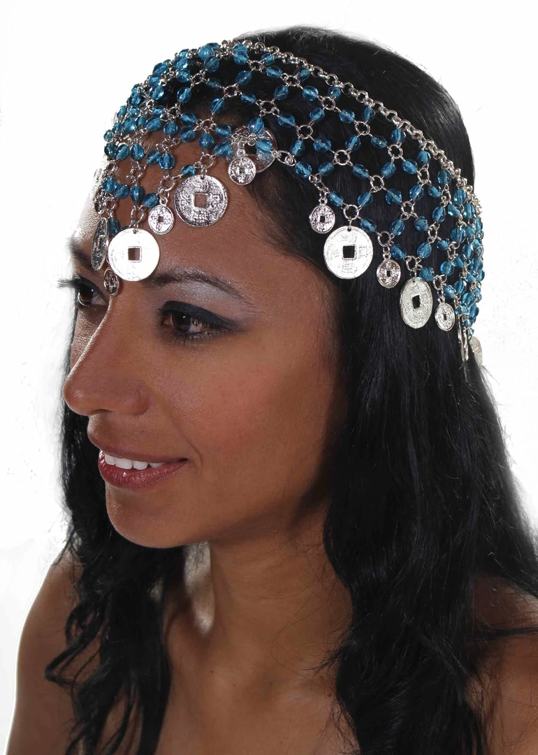 Miss Belly Dance Belly Dance Net Beaded Head Piece With Coins | DEIRA CROWN Headwear