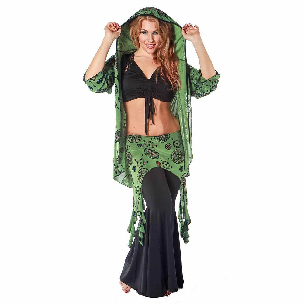CS346 –‚ Pera Shala…‚ This ensemble features our newest hooded jacket and skirt, which has been a head turner at conferences, everyone really loves it. Wear these layers on or off stage. It’s raqs couture.‚