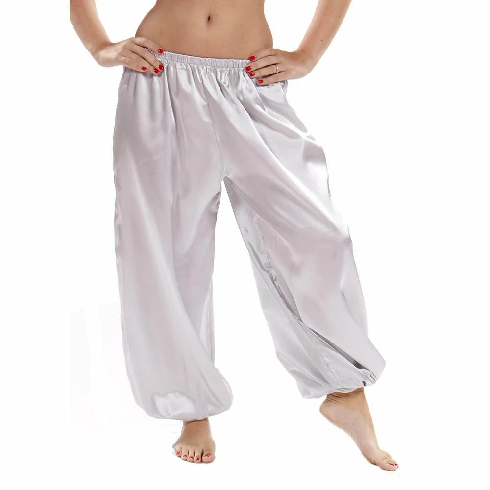 HP05… Lovely satin harem pants are roomy and allow freedom of movement. Pants are perfect for layering with other outfits and also look great alone and or with your favorite practice top or dance practice t-shirt.