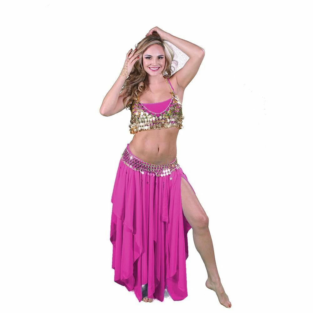 CS44 – OnyxRave…A 3-piece belly dance costume perfect for dancers who love the shimmering effect of coins. Looks great under club lights and is available in silver or gold.