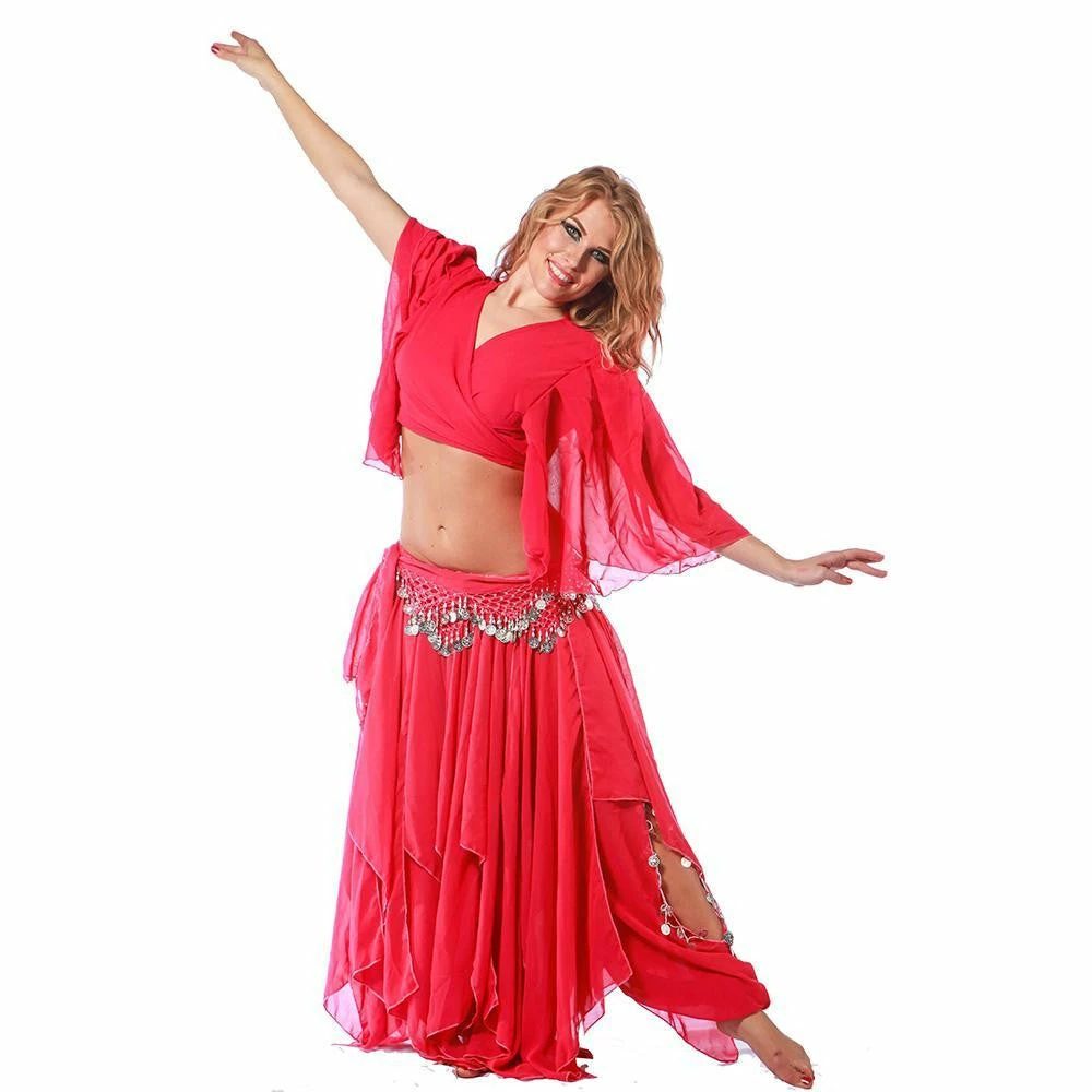 CS195-Fit for Fatine…Try this four-piece ensemble with a matching tiered skirt, adjustable top and coined Hip scarf (zills /finger cymbals not included). The outfit is great to wear to practice or on stage for your show. It’s also perfect for troupes looking for a signature uniformed look. Pair this with an accessories package or jewelry.