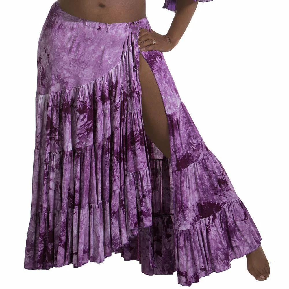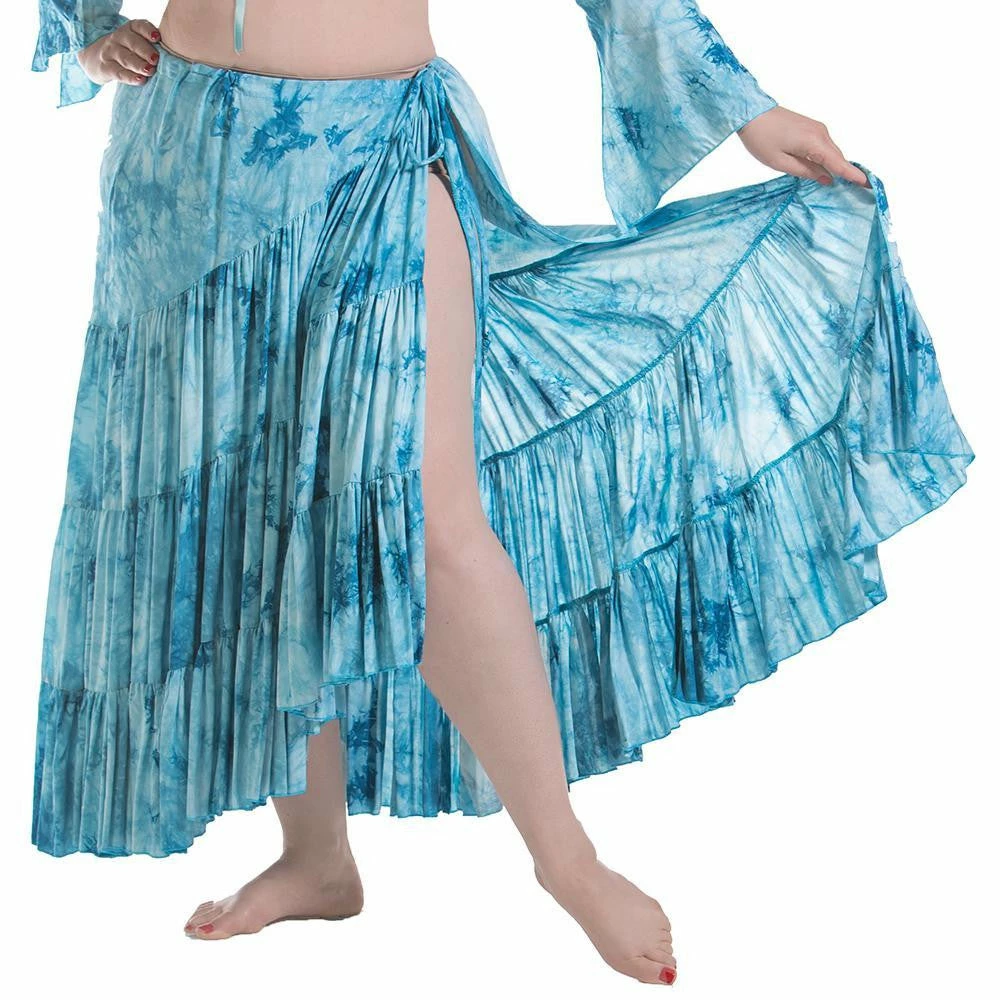 SKC110-BATIK BELLYDANCE SKIRT…Batik prints are used throughout the region all year round. These gorgeous skirts make an impact on festival stages and ours have huge layers and ruffles. Get this full spinning skirt in batik print with string ties on the side. The length is long and touches just below the ankles. You’ll love this for you and your troupe.