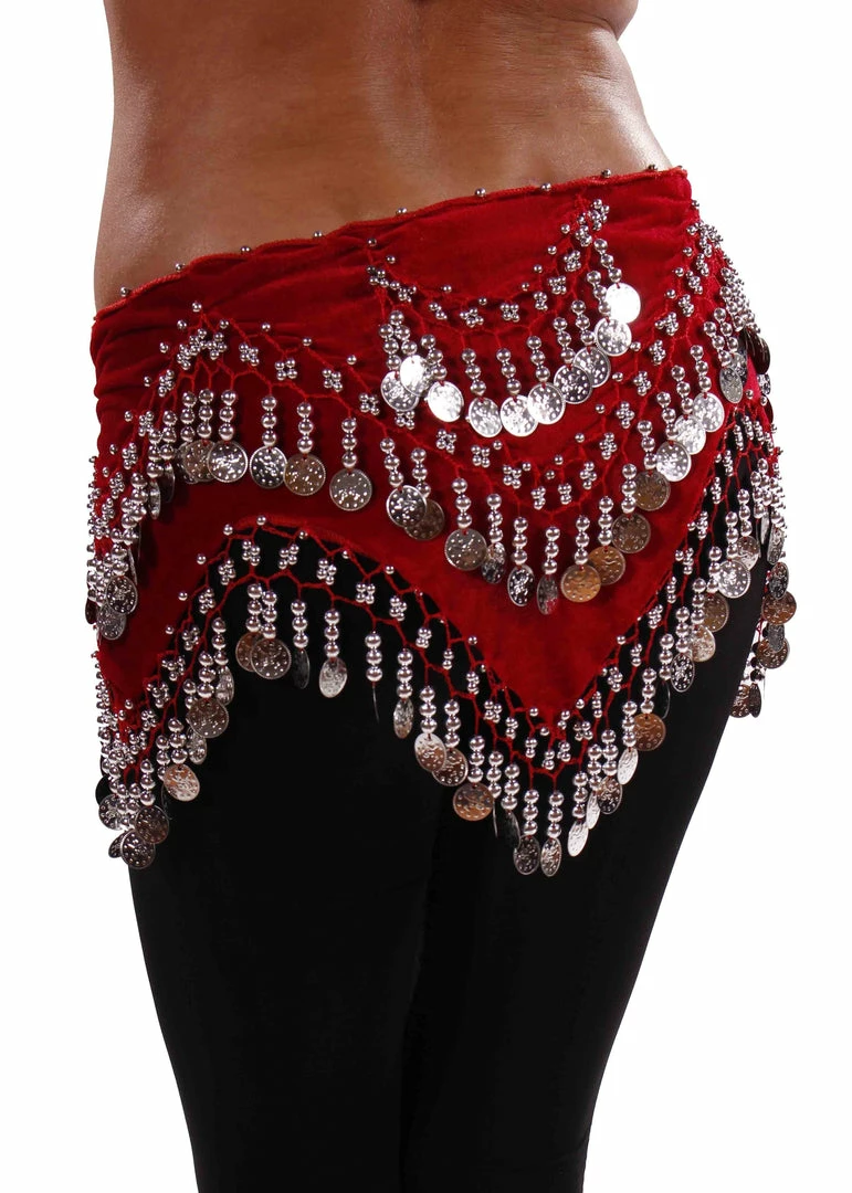 TV-ZEINA’S ZIGS…Velvet is classic and this hip scarf is made of the silky feel velvet fabric with a retro design. This is inspired by the earlier raqs greats when fringe and beading ruled the day. For many classic raissat this style is forever. It features a zig zag design with additional lower back embellishments. Try this out for your next ode to the classics.