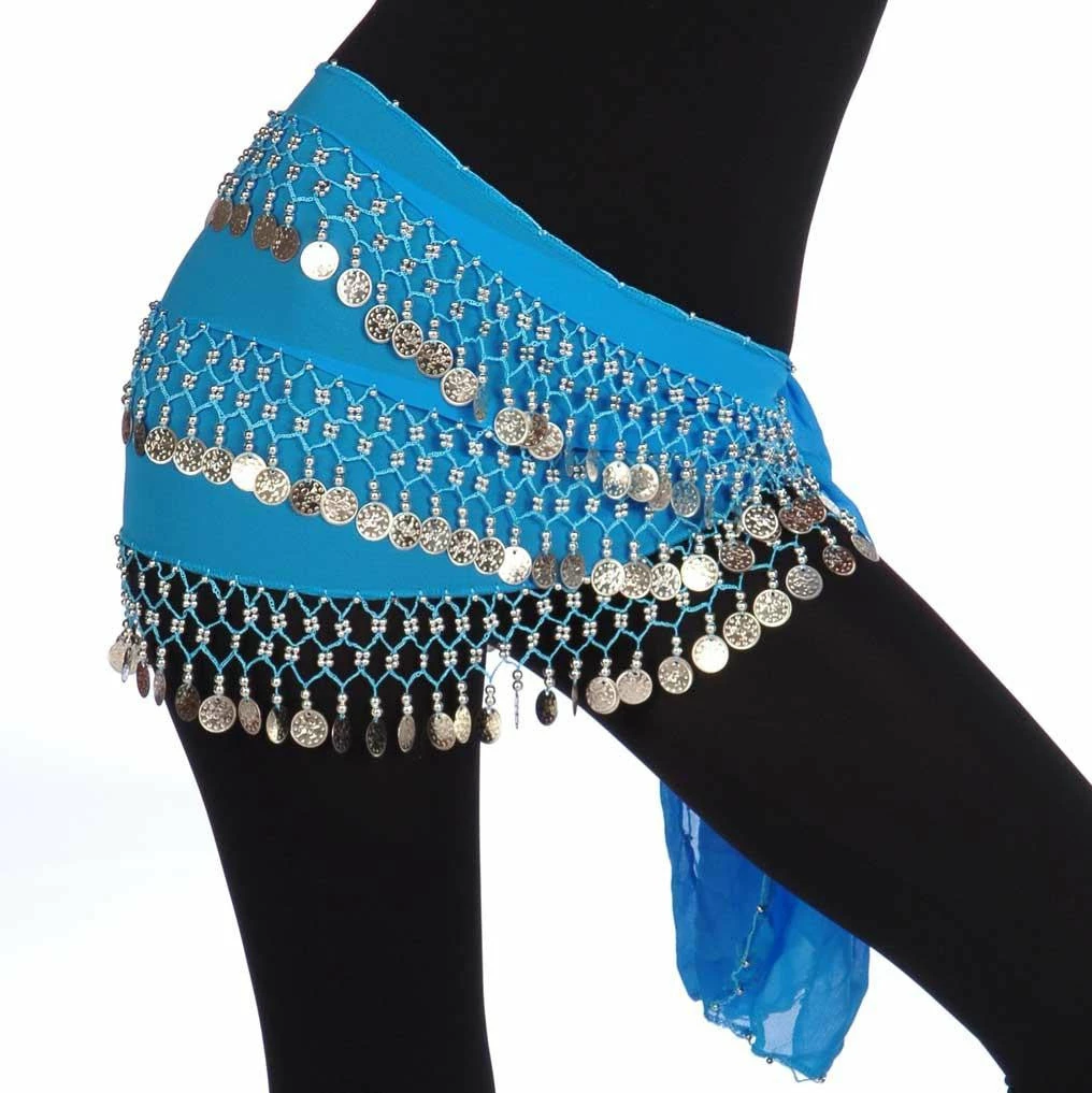 XCC – Turkistani Plus……This 3 tiered hip scarf with silver coins and beads has an elegant yet simple design that looks great in traditional dance sets. Its perfect for performing Turkish Rom and dances from the East featuring props such as zills and music spoons. This scarf is a great addition to your Zumba workout!.
