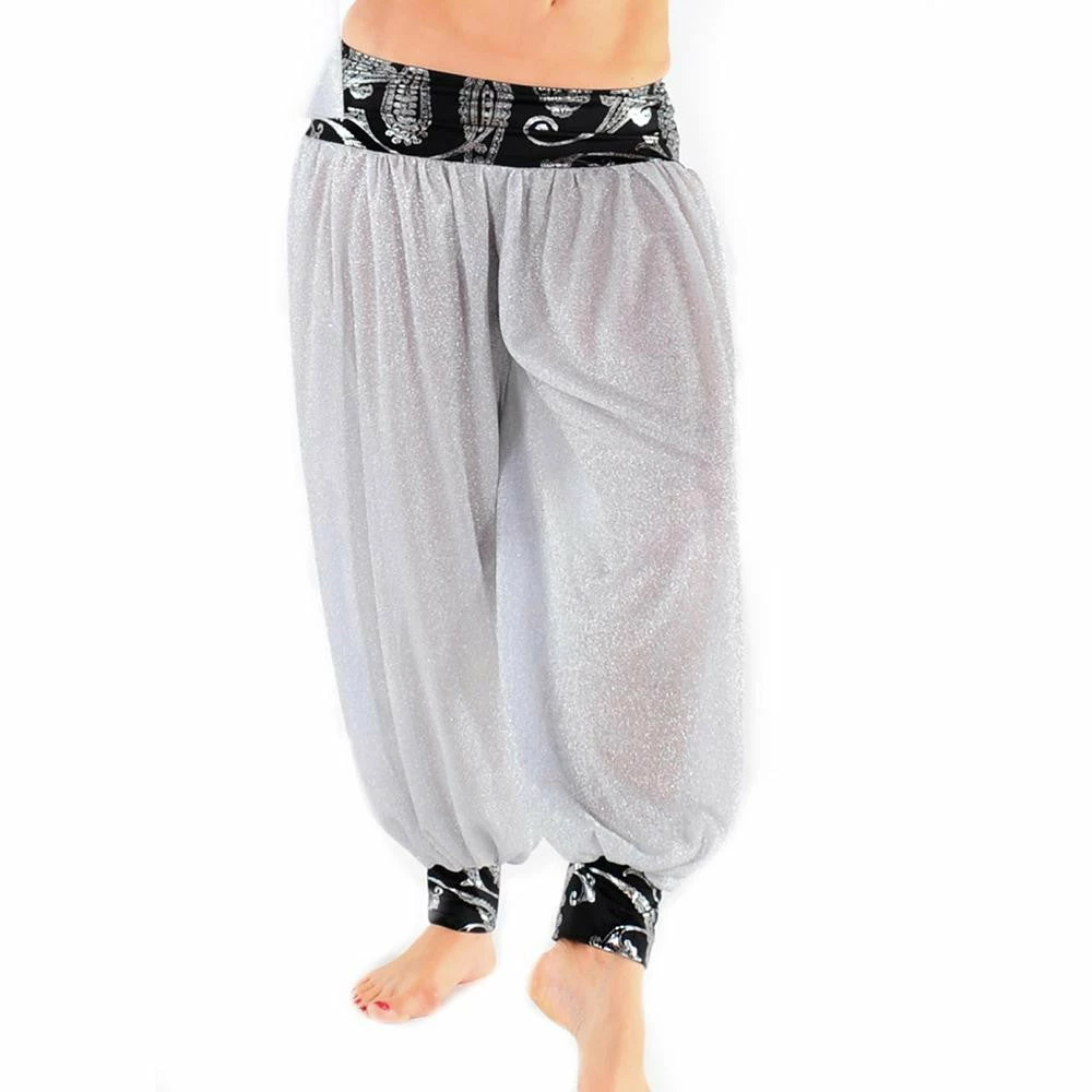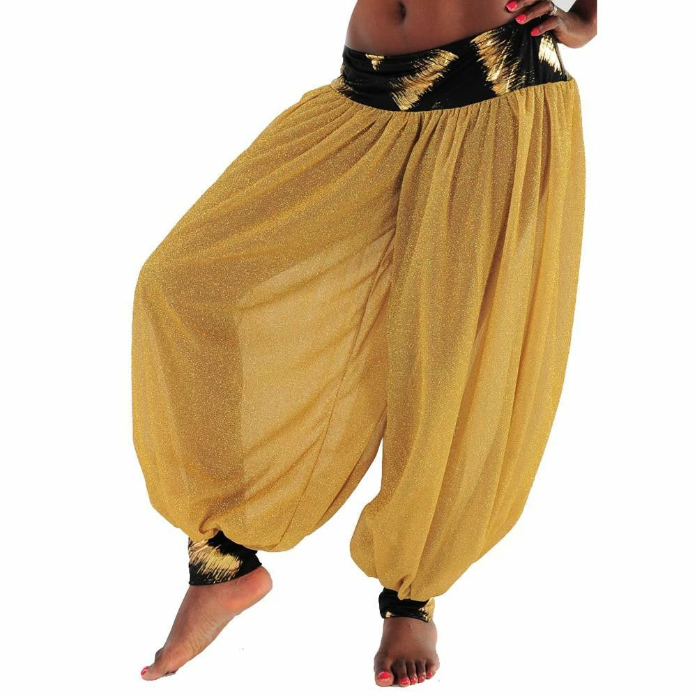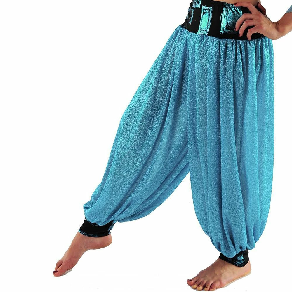 HP15-Shimmer Shimmy… A unique harem style pant with room in the legs and a comfortable panel across the tummy that can act as a hip decor. Pants are stretchy in the waist and are cuffed in a traditional fashion at the ankle.