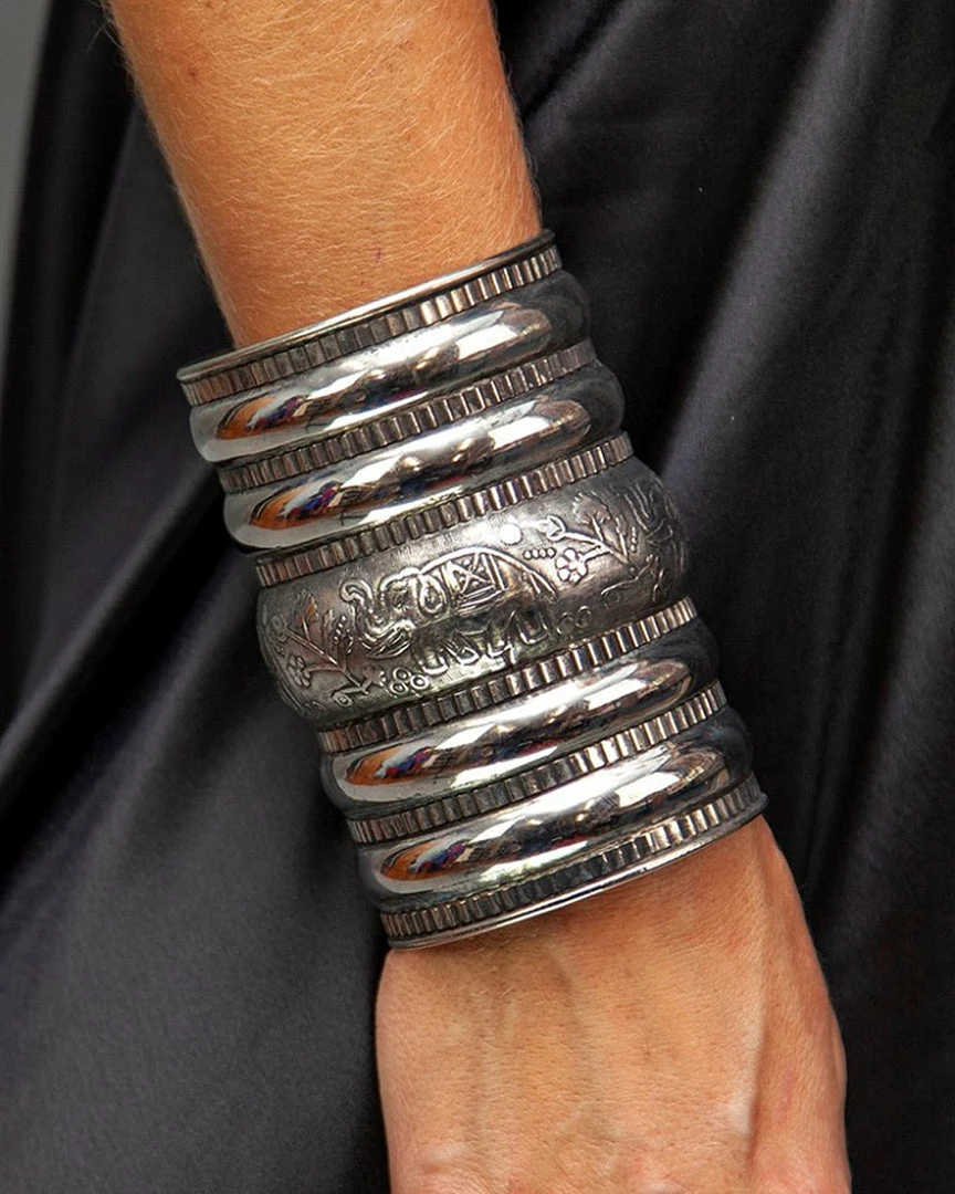 AB3- 4″ wide silver arm cuff with an elephant engraving